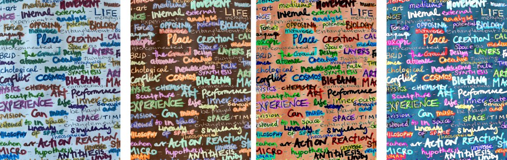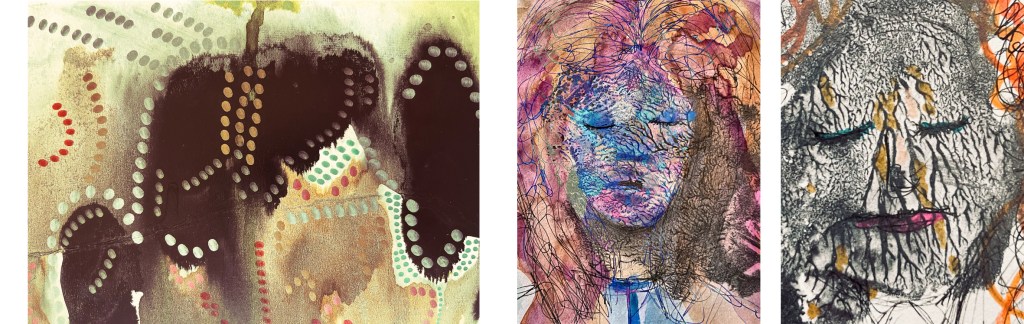 Each artist has one month with the book before sending it on to the next artist. It doesn’t have to be perfect and can include things that interests us, pop culture, the environment or what we are working on, on our courses. It’s meant to be fun and it is, it’s always lovely to receive something in the post that isn’t a bill!