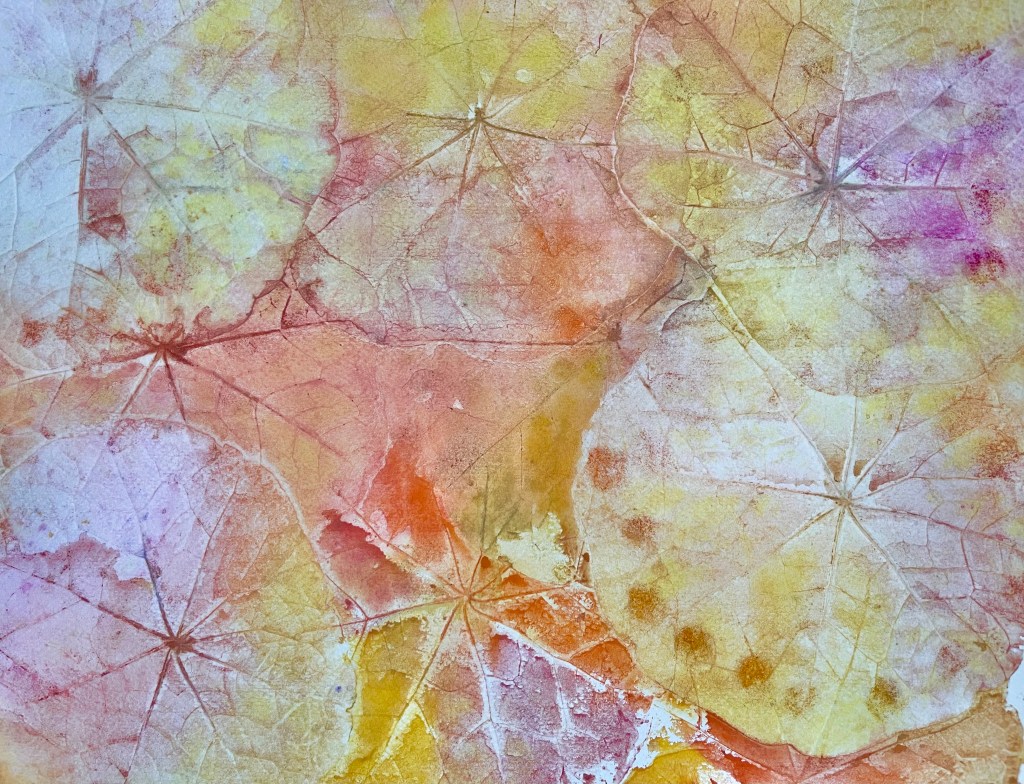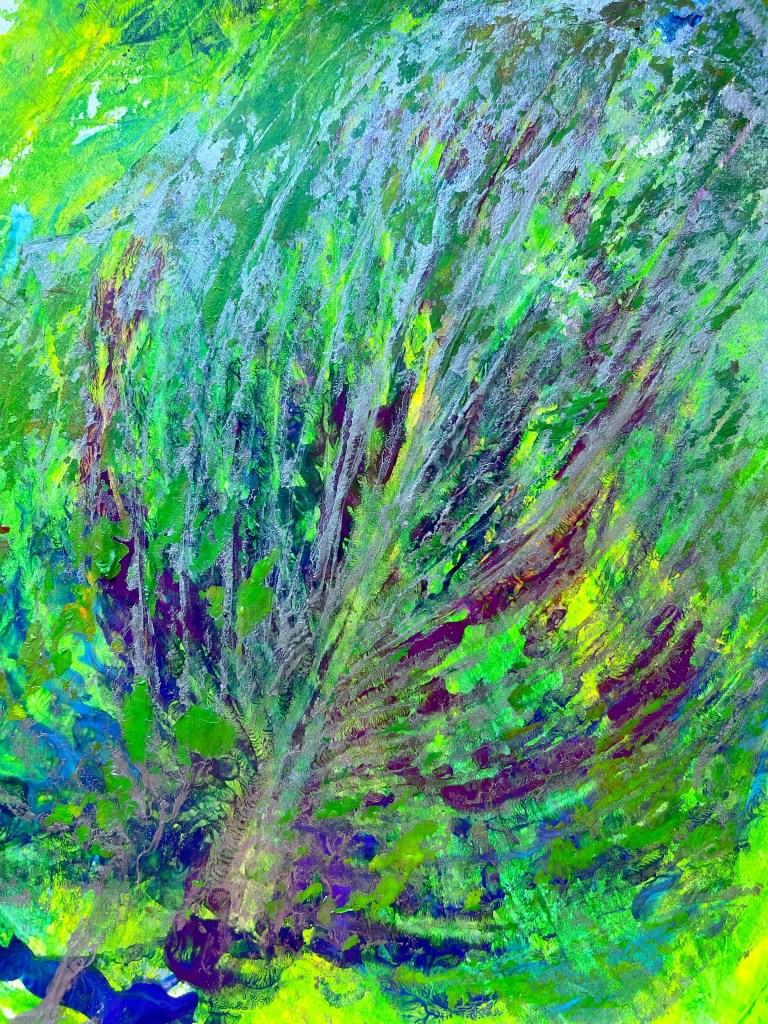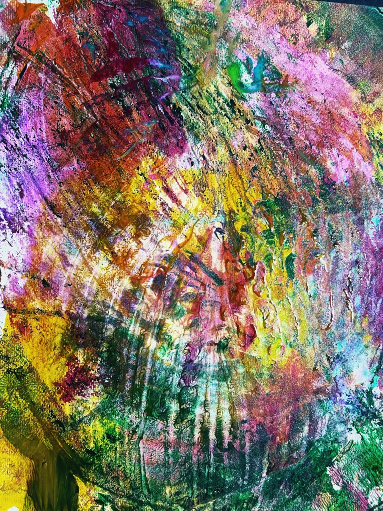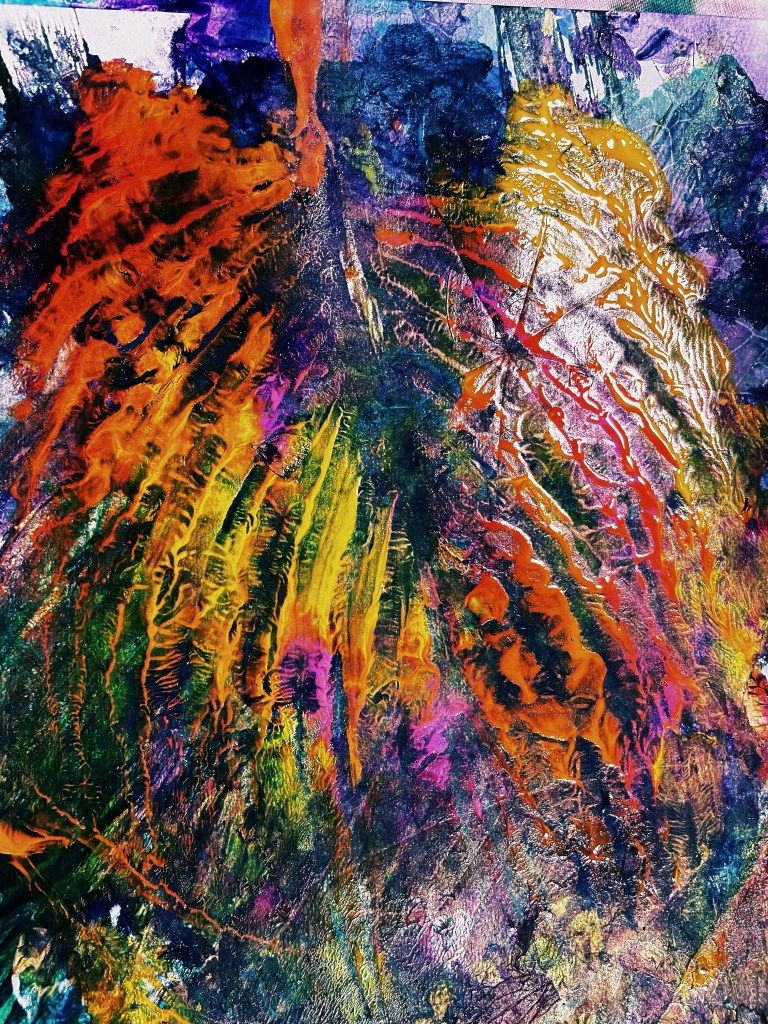 Following on from these I used some thicker, pouring acrylic’s. They were strong and heavy and produced completely different textures. I mixed several layers of paint and printed multiple times.