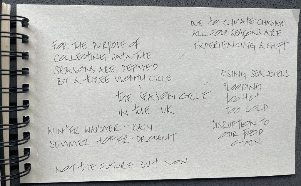 Aside from the two sketchbook experiments in the river and the artwork I have been working on, these are a few of my notes from my sketchbook.