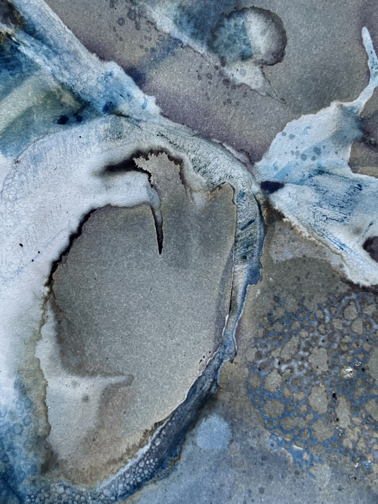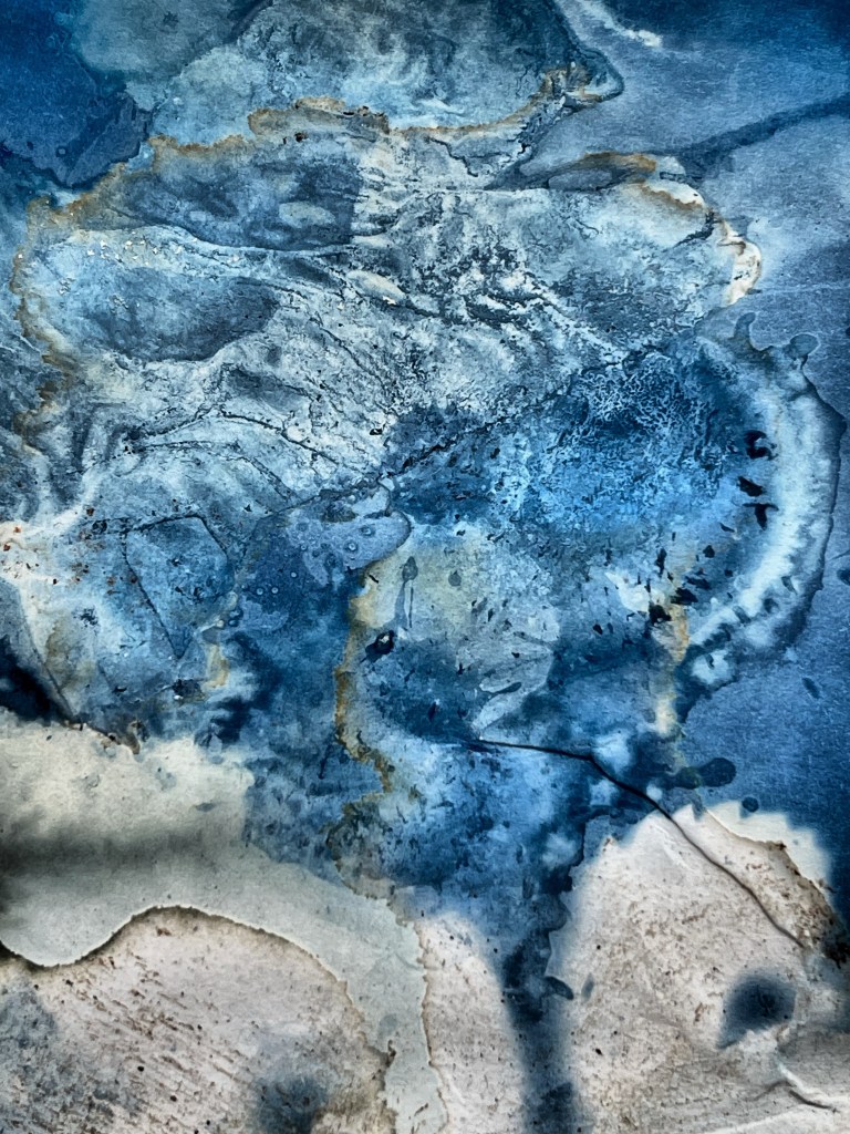 The pieces are embedded with marks from the found objects, the sediment, minerals, and the algae. The pieces feel alive with the ecological narrative, organic with a weathered natural feel, uniquely textural and layered with rich streaks of uneven tones. An entanglement of natural and found objects. I do feel they are are definitely a different hue of blue.