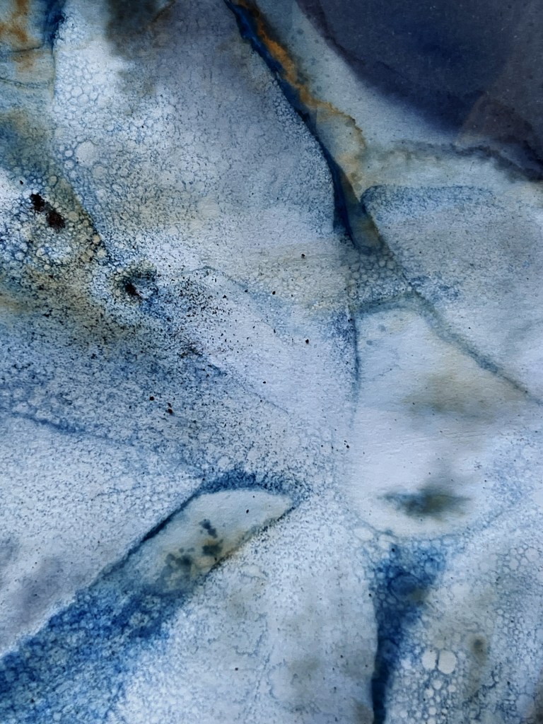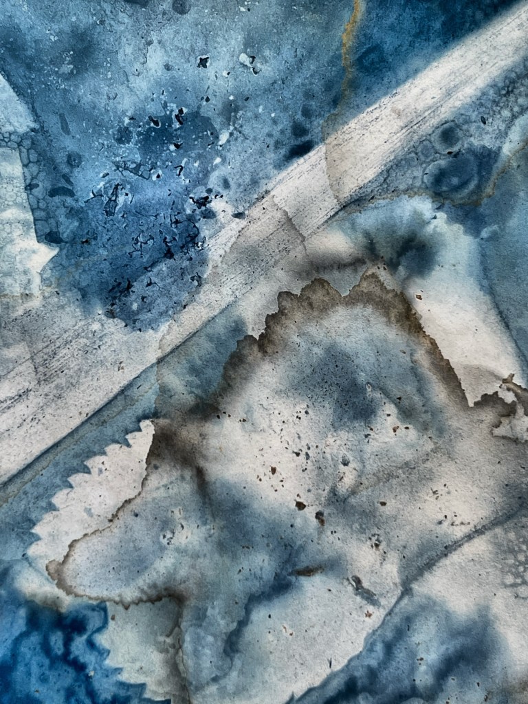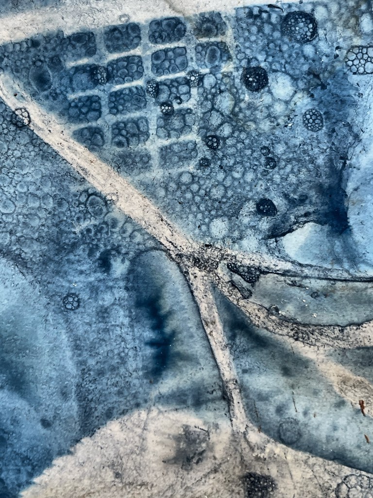The cyanotypes made with vegetation, natural debris and pollution become a haunting portrait of what our rivers carry, lose and remember. Ephemerality through flow and fragmentation, layout and form, reflecting the meandering course of the river and the forced interruptions it endures through pollution.