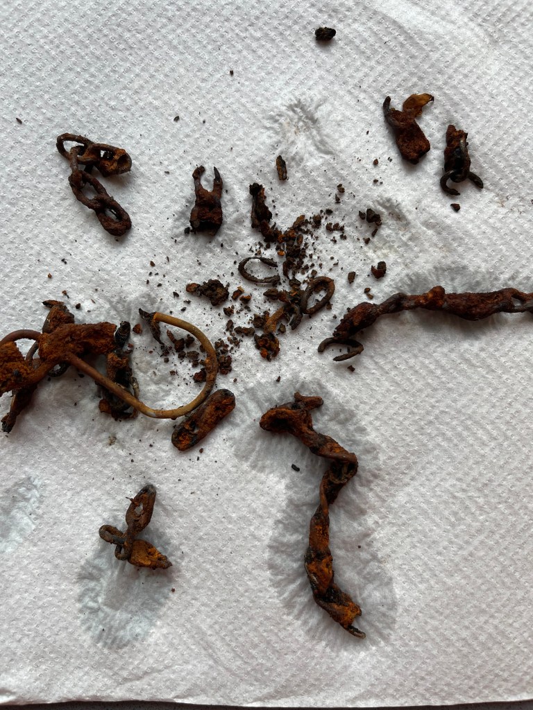 The first actually within the mix of found objects, reeds and debris from the river bank and the second to wash the cyanotypes in. As I’m writing this, I have only completed the first set so am interested whether the second set will look very different.