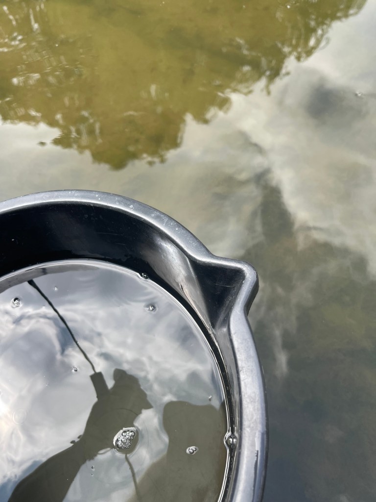 By using the river water it adds a layer of unpredictability, uncertainty and also authenticity, visually embedding the waters story, in that snapshot of the ecosystem at that time. The physical state of the river at that moment, its health when the water was taken. (Today 18th May 2025). The river becomes both the collaborator and the creator.