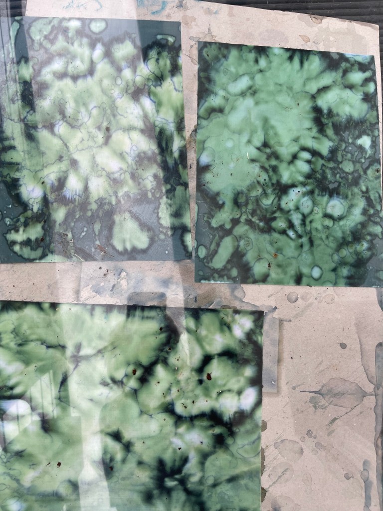 Using these without rinsing them, and trying to keep as much as possible of the liquid, this gave the next pieces a green hue.