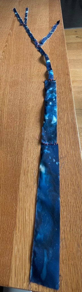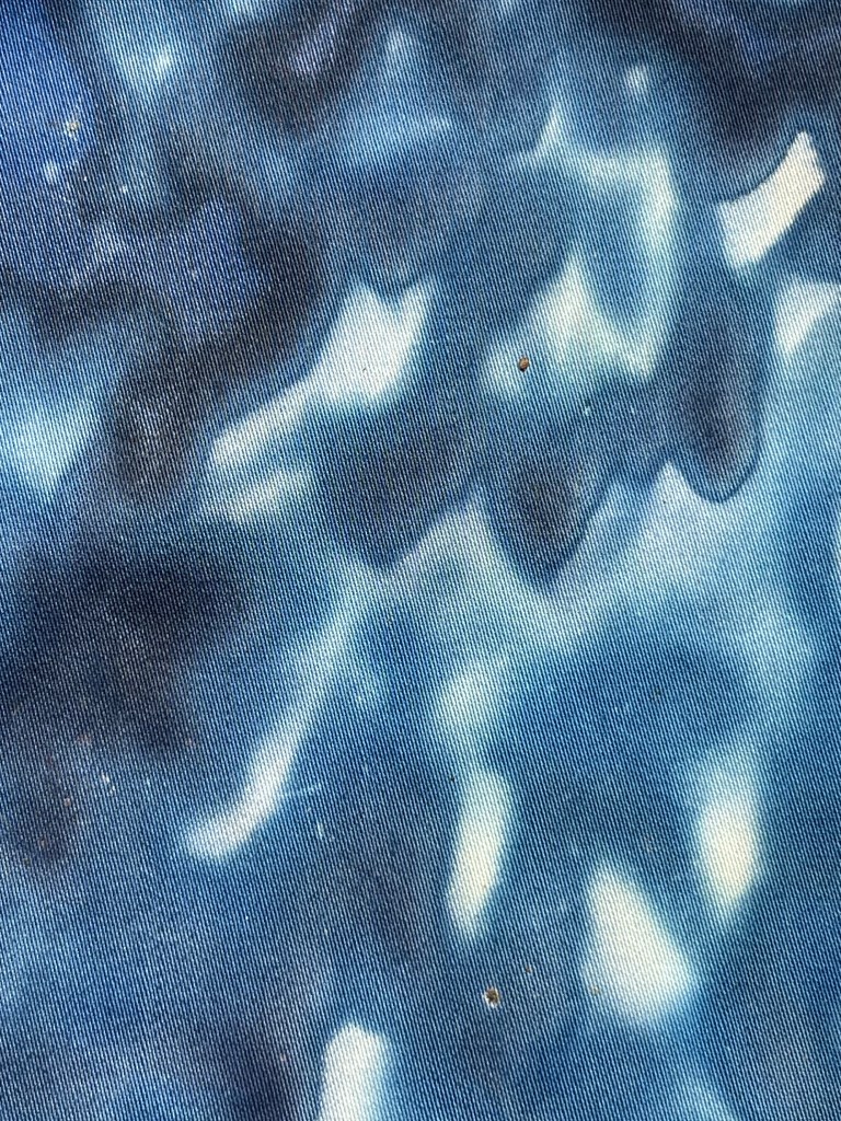 The first piece of fabric was quite a dark blue with just a small hint from the rust. This piece was quite fluid and reminiscent of flowing water. There is a small hint of the outline of the leaves, however not intricate detail.