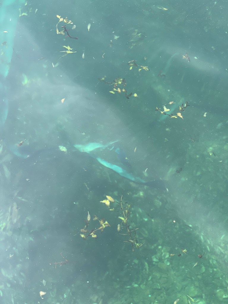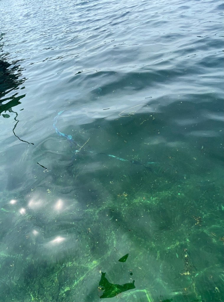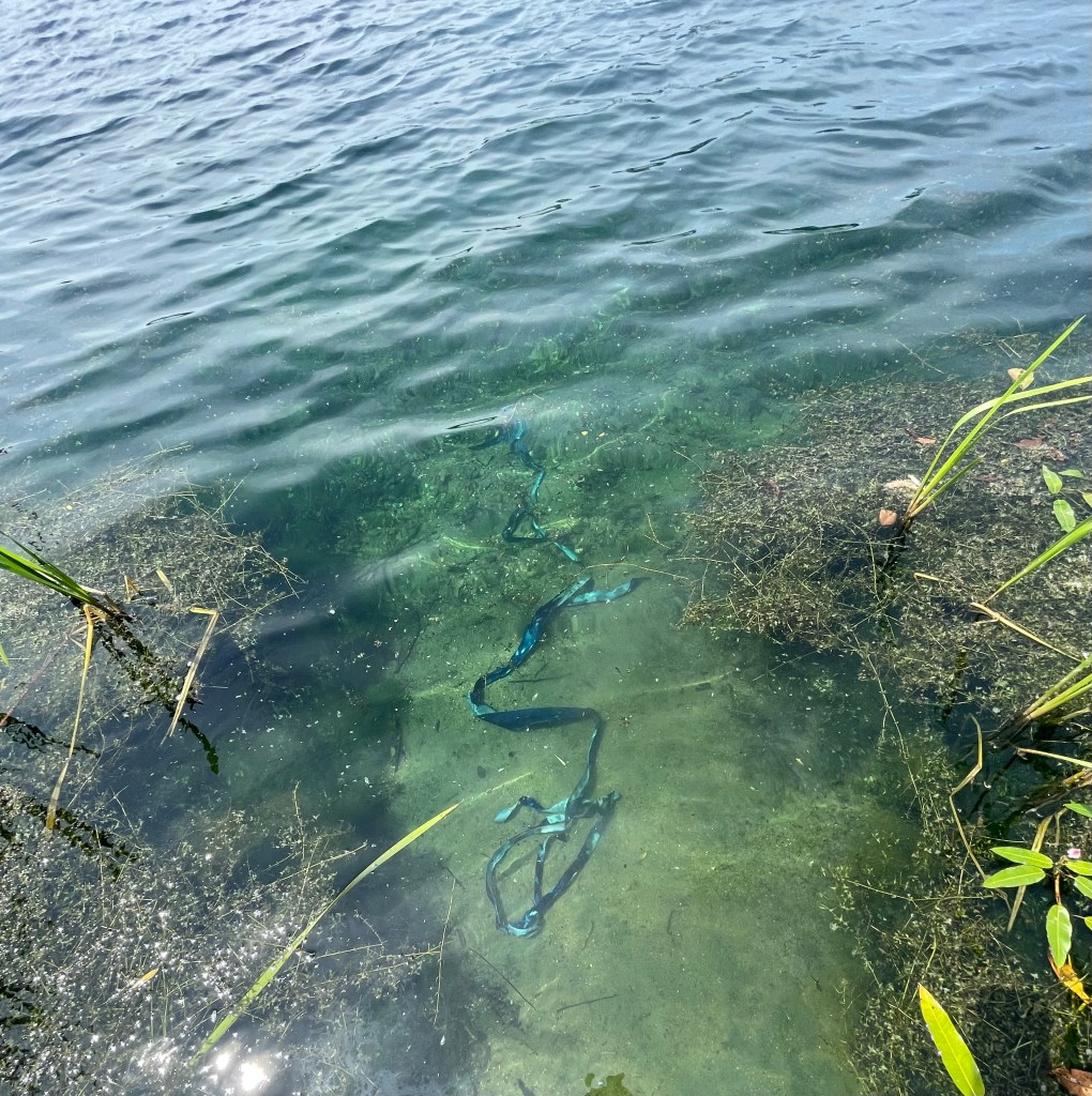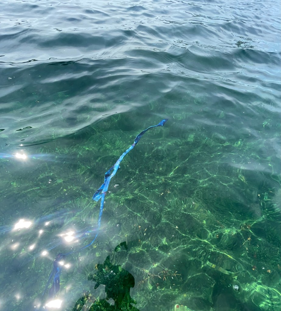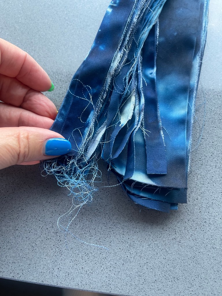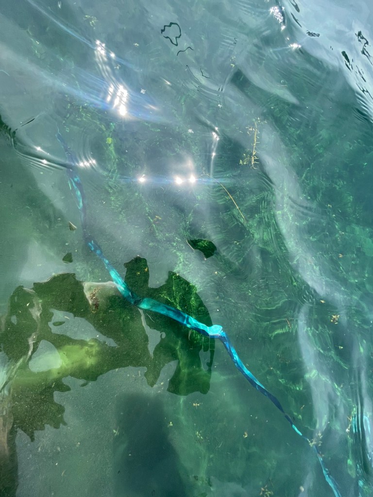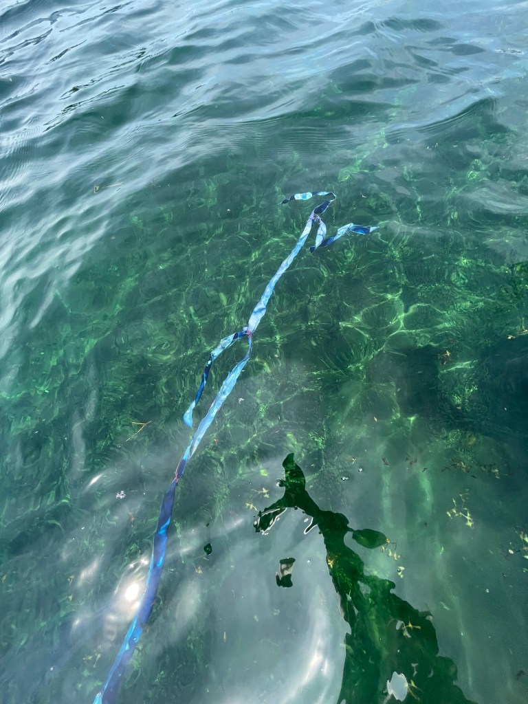 Putting it in the water, safely and with no littering. It flowed beautifully, however I did not anticipate it sinking so quickly, the fabric was heavy from the dye.