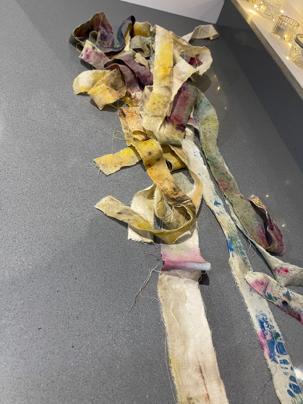 In retrospect, bringing the water home has allowed you to move onto some exciting stained surfaces and fabric manipulation. You can do more of these.